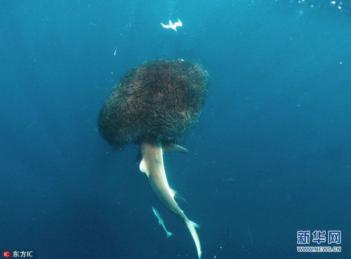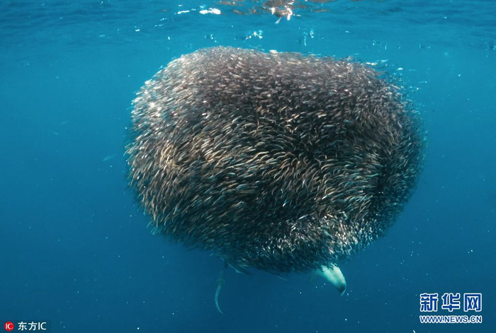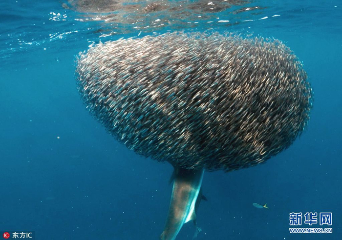 鲨鱼邂逅球状鱼群 游进去玩个躲猫猫(组图)