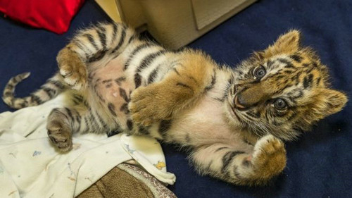 萌萌的小老虎被送到圣迭戈动物园暂时栖身。(图片来源:英国广播公司网站)