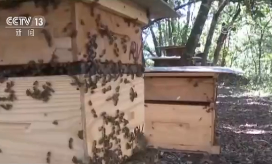 当地蜂胶采制公司工作人员 蒂亚戈:准备阶段我们会用特制的小盒子来吸引野生蜜蜂在此生长,当这些蜜蜂长大之后,我们把它们带到这里,用这样的方式养蜂,然后蜂后会在这些蜂巢盒里产卵。