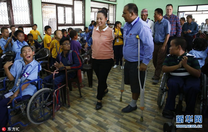当地时间2017年9月5日,尼泊尔加德满都,世界上首位获得飞行执照的无双臂女飞行员 Jessica Cox受国际残联的邀请来到尼泊尔参加残障人士会议,这也是她首次到访亚洲地区。在会上,尼泊尔残障人士为 Jessica 表演了歌舞,Jessica也分享了她的亲身经历,鼓励残障朋友像她一样积极乐观,成为有价值的人。(图片来源:东方IC)