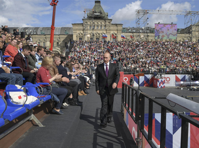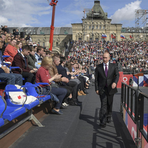 9月9日,在俄罗斯莫斯科红场,俄罗斯总统普京(中)出席欢庆仪式。(新华社/美联)俄罗斯总统普京在红场举办的欢庆仪式上说,莫斯科是当今世界上最现代化的都市之一,莫斯科正在进行的大规模改造工程与其世界级大都市的地位匹配,将提高莫斯科市民的生活质量。