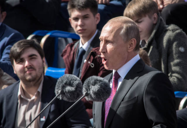 9月9日,在俄罗斯莫斯科红场,俄罗斯总统普京在欢庆仪式上讲话。(新华社/路透)莫斯科市长索比亚宁说,莫斯科正在进行积极建设,同时还会遇到很多困难,莫斯科人将有能力解决一切问题,建造美好莫斯科。
