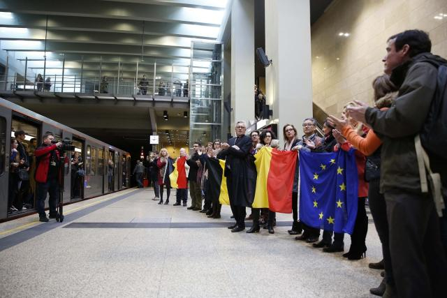 2017年3月22日,在比利时首都布鲁塞尔市中心的舒曼地铁站,人们参加恐袭事件一周年纪念活动。2016年3月22日,布鲁塞尔扎芬特姆机场和市内欧盟总部附近马埃勒贝克地铁站先后遭遇恐怖袭击,造成重大人员伤亡。(新华社记者叶平凡摄)长期以来,欧洲一直是安逸、平静的代名词。但近年来一波又一波的恐怖袭击彻底打破了这里的宁静,它像一颗毒瘤,无时无刻不在折磨着欧洲人的神经。