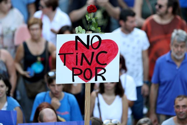 2017年8月26日,在西班牙巴塞罗那市,民众高举“我不害怕”的标语牌参加反对恐怖主义集会,抗议近期发生的恐怖袭击事件。巴塞罗那市中心兰布拉斯步行街17日发生货车撞人恐袭事件,巴塞罗那以南100多公里处的坎布里尔斯镇当晚也发生一起类似事件。(新华社/路透)再次,西方民主制度固有的悖论导致社会边缘群体利益无法得到保障。鲁文·奥吉安认为,欧洲国家恐怖袭击频发不应仅仅归结为文明和宗教冲突,它还是社会制度内部冲突和矛盾的体现。另外,欧洲国家的基督教主流文化,对穆斯林文化的曲解和排斥仍较为严重。