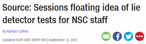 CNN报道说,塞申斯对白宫内层出不穷的重要信息被“知情人士”泄露给媒体大为头疼,但又迟迟找不到谁是“内鬼”,因而想到了测谎这个办法。