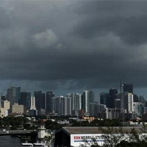 9月8日,飓风“艾尔玛”风眼到来前,美国佛罗里达州迈阿密市中心上空乌云密布。(图片来源网络)
