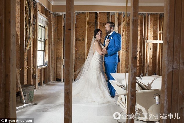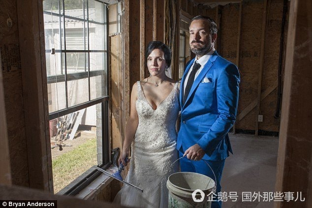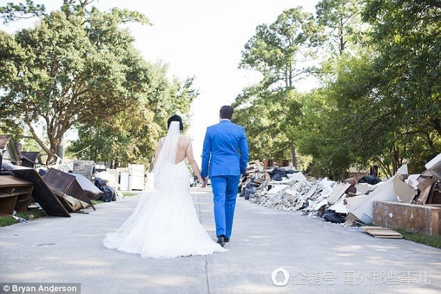 因为盖房子他们已经推迟了婚礼两次,他们不想再次推迟,所以两人决定保留婚礼仪式,但是把接待的费用捐掉。Shellie 说,拍摄这一组照片的目的是为了告诉大家他们为什么捐赠掉接待费。他们自己家没有受到损失,但是部分家人和朋友位于得州东南部一些受灾最严重的地区。