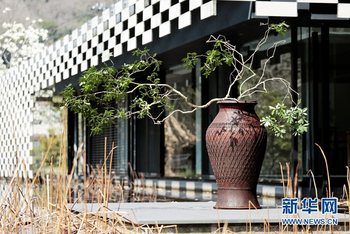 王传峰的竹筐插花艺术照片。(王传峰提供)