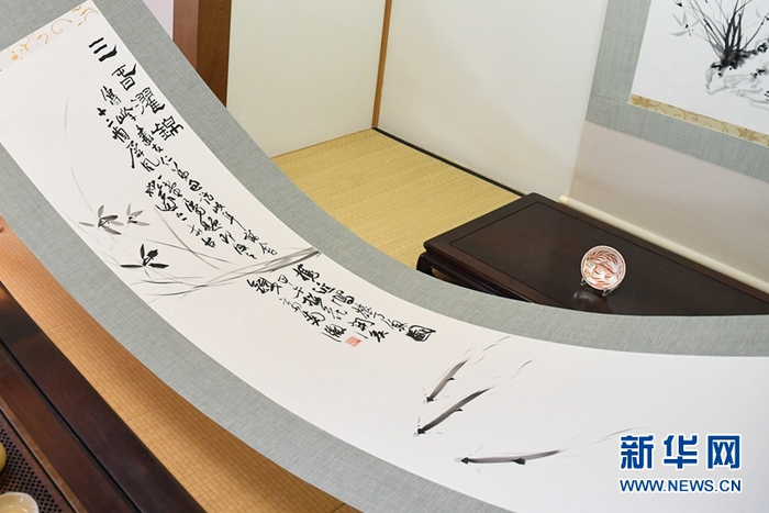 王传峰与他人合作的艺术品。新华网记者华义摄