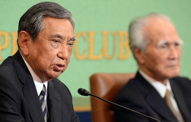 2015年6月9日,在日本东京,日本前内阁官房长官河野洋平(左)和前首相村山富市发表讲话,就历史和安保问题“敲打”安倍。两人再次重申承认殖民侵略历史事实、坚持和平宪法专守防卫对日本的重要意义。 (新华社记者马平摄) 1931年9月18日,日本蓄意在中国东北制造借口发起战争。这一天也被称作“九·一八”事变,成为日本帝国主义侵华战争的开端。