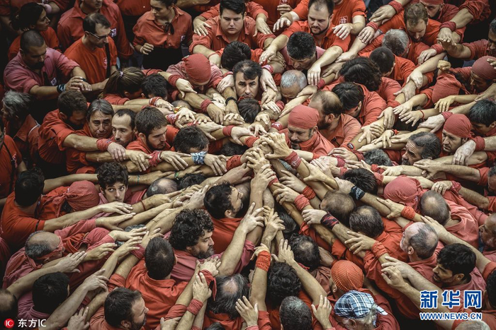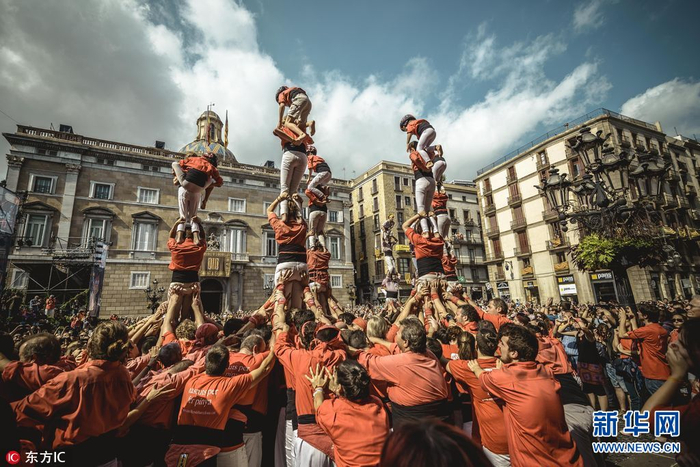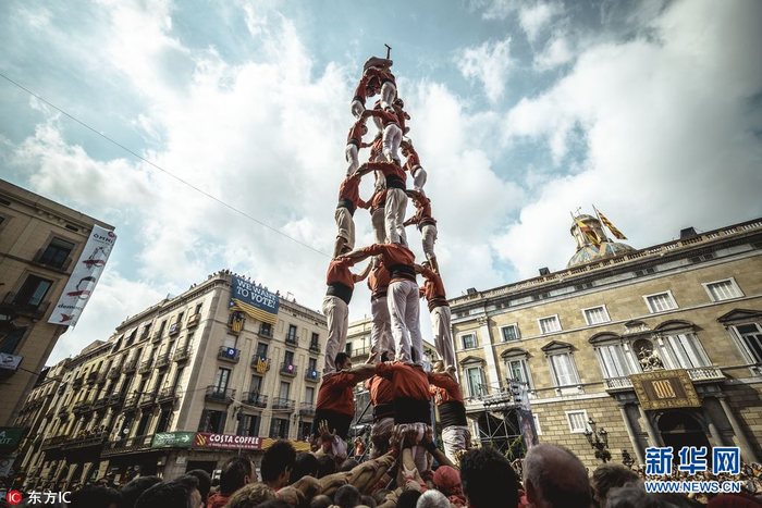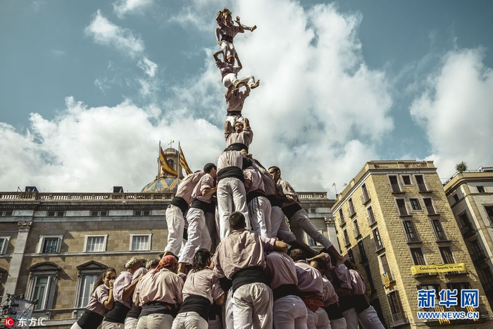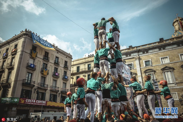 西班牙巴塞罗那上演精彩叠人塔活动 庆传统节日(组图)