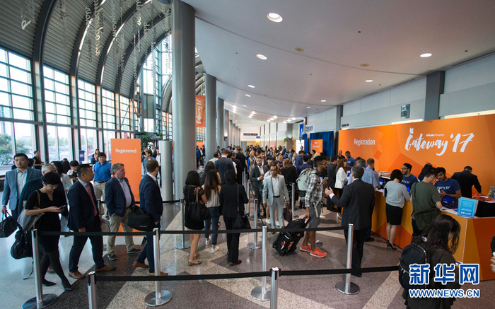 9月25日,在加拿大多伦多的国家会展中心,人们排队领取与会证件。当日,中国阿里巴巴集团举办的2017年加拿大中小企业论坛在多伦多举行,吸引了逾3000名与会代表出席。新华网发 (邹峥摄)