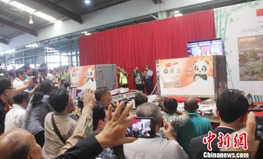 中国大熊猫抵印尼 欢迎民众热情爆棚
