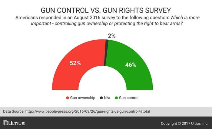 2016年8月的一项民调显示,52%的美国人认为持枪更重要,支持控枪的只有46%。