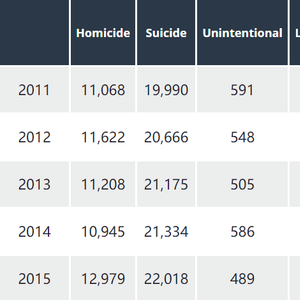 数据显示,2011至2015年,美国每年因枪击死亡人数都在3万人以上(包括自杀),且呈逐年上升之势。