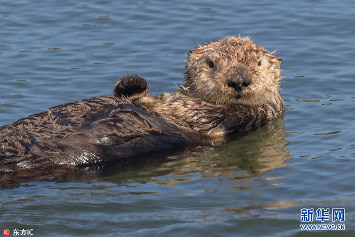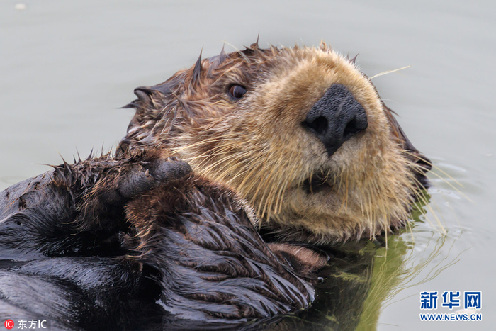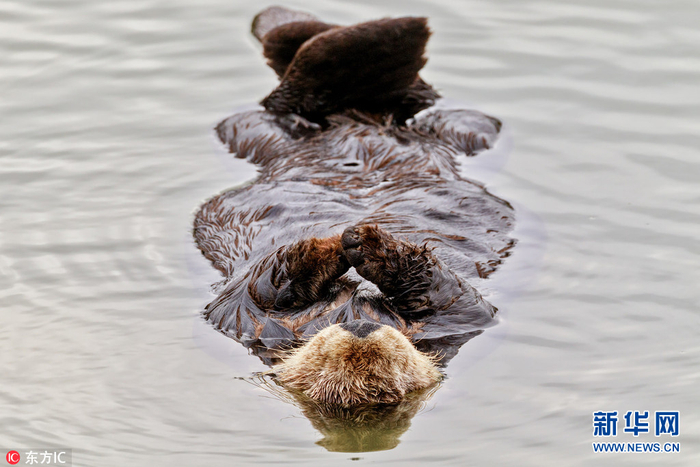 2017年10月9日报道(具体拍摄时间不详),加州蒙特雷湾,一只可爱的小水獭躺在水面上随波逐流,它手脚交叉在一起,看样子似乎在冥思着什么。57岁的Boris Droutman是一名电子商务公司的主管,他用镜头拍下了这只可爱的小水獭。或许是察觉到了Boris正在拍自己,小水獭尴尬地望向摄影师,这一眼恰好的被镜头捕捉下来。图片来源:东方IC