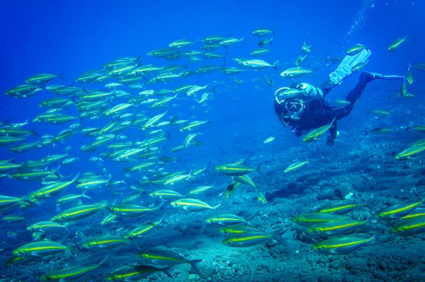 2016年9月11日,一名潜水爱好者在印度尼西亚巴厘岛海域潜水(水下摄影)。 新华社记者杜宇摄