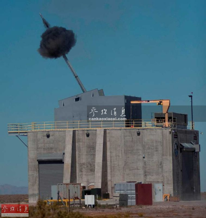 AGS由英国BAE系统公司地面武器分部研发,于2010年正式交付美海军。其最大持续射速每分10发,在配备LRLAP增程炮弹后,最大射程可达154千米。图为在陆地试验台上进行打靶测试的155毫米“先进舰炮系统”(AGS)隐身舰炮。