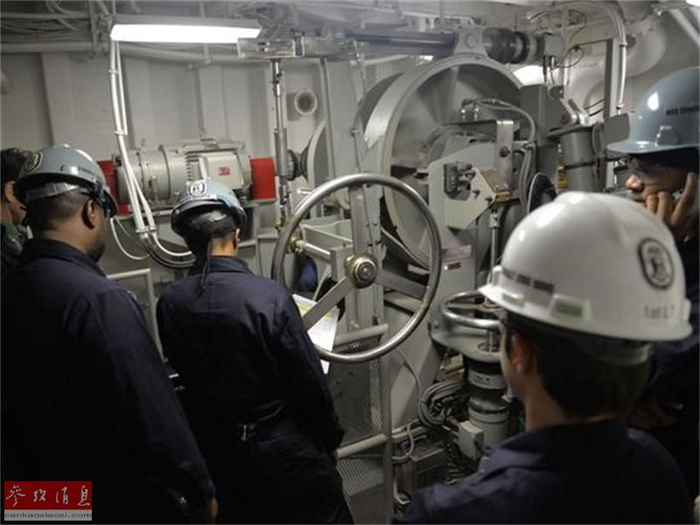 图为DDG-1000舰员操作舰锚。