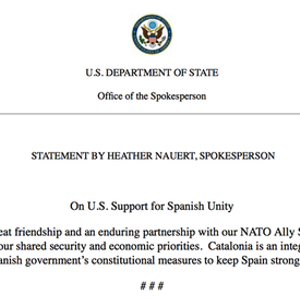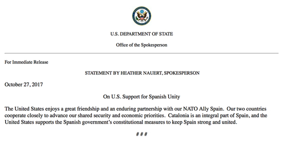 美国务院:加泰罗尼亚是西班牙不可分割的一部分