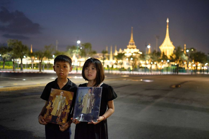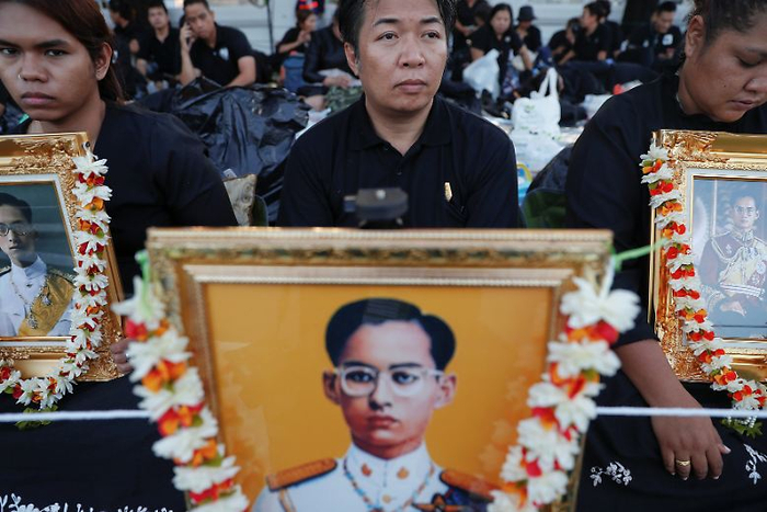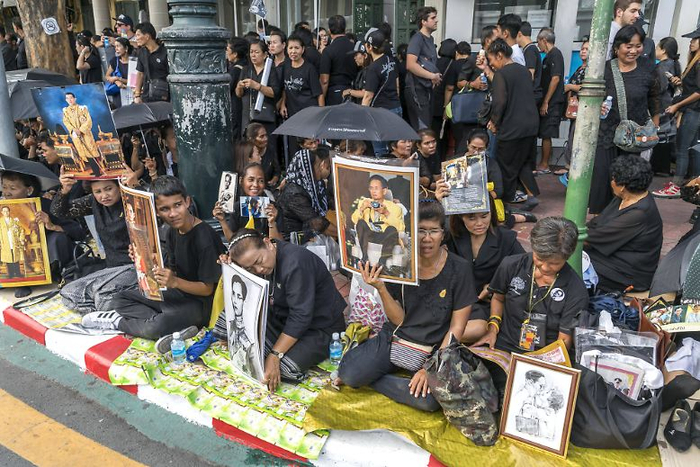据法新社10月26日报道,黎明时分,就有约20万民众聚集在大王宫附近,向这位被称为“国家之父”的国王道别,他们挤满了人行道,很多人手里还捧着受爱戴的已故国王的画像。