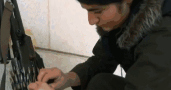 却慢慢学会如何给枪上膛,