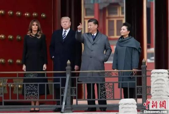 ▲11月8日,国家主席习近平和夫人彭丽媛陪同来华进行国事访问的美国总统特朗普和夫人梅拉尼娅参观故宫博物院。