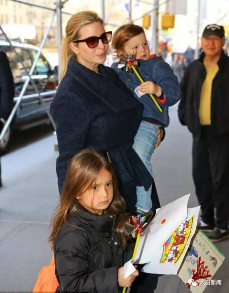 今年3月份,据外媒披露的一张图片,伊万卡一手拉着大女儿阿拉贝拉,一手抱着两岁的儿子约瑟夫,从学校接他们回家。阿拉贝拉手中还拿着几张画,看上去是刚在学校完成的。其中一幅上面画着蝴蝶和树木,并在旁边用中文写着“树”和“蝴蝶”。在画纸顶部还用彩笔写着汉语拼音“Chun Tian”。