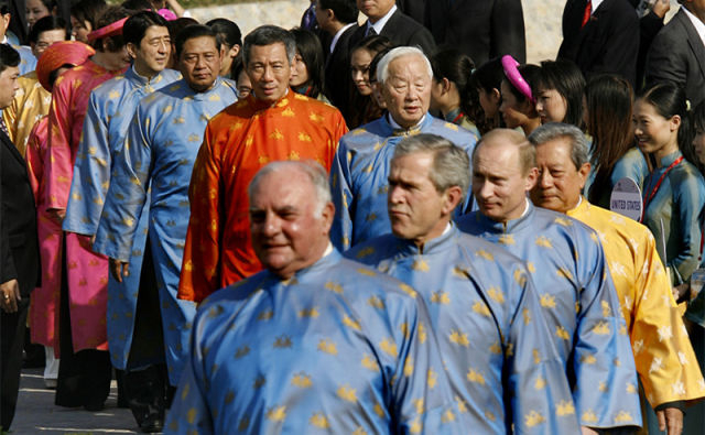 2006年,APEC领导人非正式会议在越南举办。当年,各经济体领导人穿的是越南传统服装——奥黛。