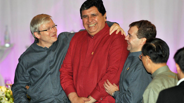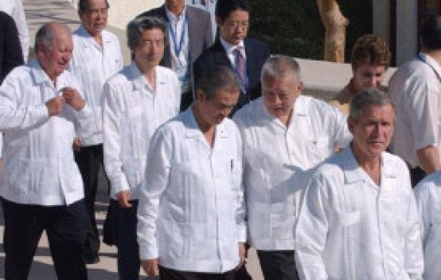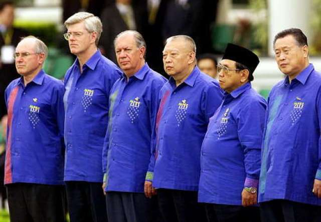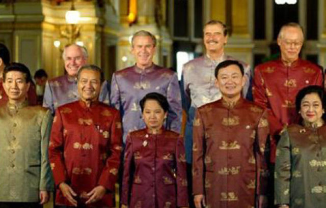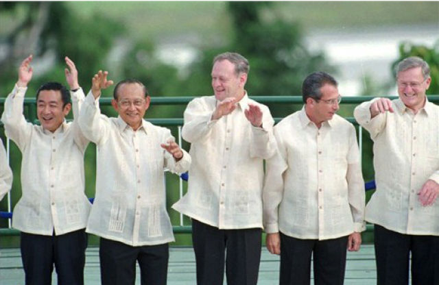 时任印尼总统苏哈托赠送每位领导人一件巴提克——一种蜡染印花衬衣。
