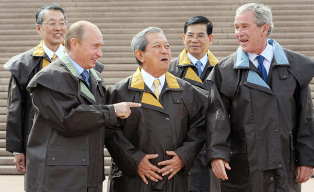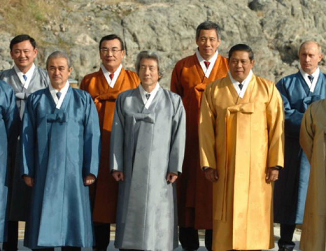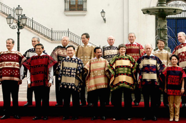 1993年,首届APEC领导人非正式会议在美国西雅图召开。各经济体领导人不带助手和随身翻译,不穿正装。从那以后,在一年一度的APEC领导人非正式会议期间,东道主通常会为与会领导人提供特别制作的当地传统服装,在宣介东道主传统文化的同时,也体现“亚太大家庭”的理念。
