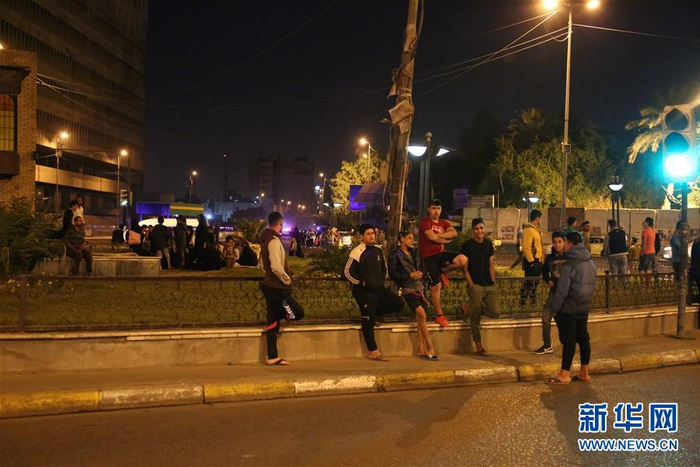 11月12日,在伊拉克首都巴格达,人们在地震发生后来到户外避险。新华社发(哈利勒·达伍德 摄)