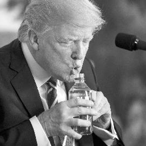 特朗普在白宫就“亚洲行”发表讲话时,口渴难耐拿起一瓶水“狂饮”。
