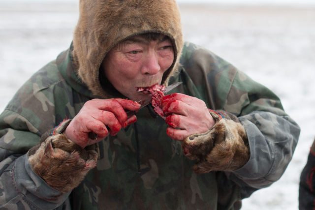 涅涅茨人是生活在俄罗斯西北部北冰洋沿岸的原住族群,以驯鹿为生。生食鹿肉、喝鹿血,是他们最日常的饮食方式。即便是已完全融入城市的年轻涅涅茨人,也依然保持这样的饮食习惯。
