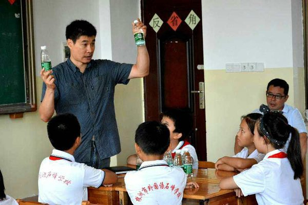 2017年9月,湖南株洲外国语石峰学校,江学勤给四年级的学生上课。(美国《纽约时报》网站)