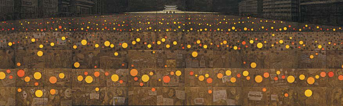青瓦台挂烛光集会巨幅画作 画家曾被朴槿惠政府“拉黑”