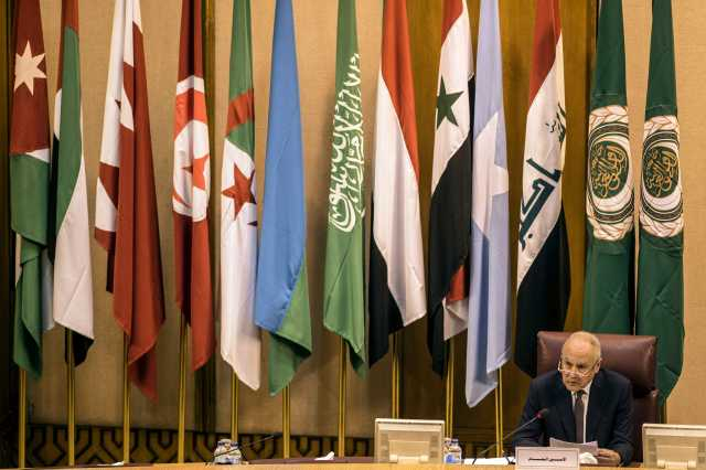 11月19日,在埃及首都开罗,阿盟秘书长盖特主持会议。(新华/法新)