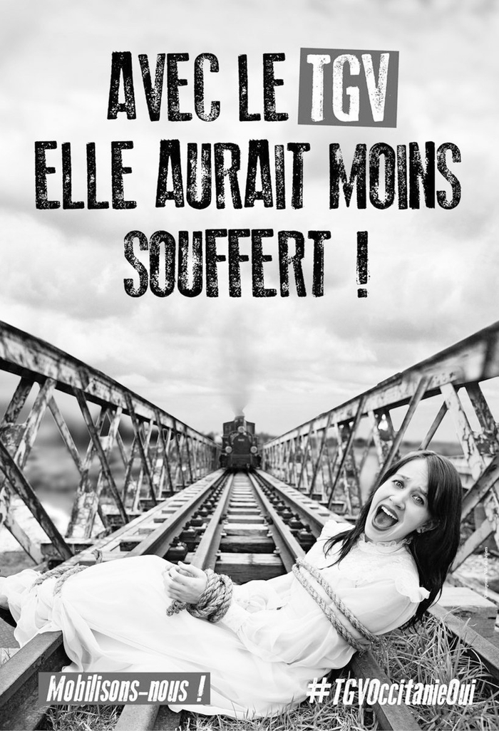 据俄罗斯“卫星”新闻网13日报道,从当地时间11日起,贝济耶市当局开始在市内各处张贴一幅骇人的宣传海报(如图)。海报中,一名年轻女子被牢牢绑在铁道上、吓得失声尖叫,她身后不远处一列老式火车正在逼近。海报的宣传语写道:“如果是高速列车的话,她就能少受一些折磨。”不少法国民众表示,刚看到这张海报的时候,还误以为是某种“黑色幽默”的反讽,万万没想到这一充满“厌恶女性”元素的宣传材料竟真的出自市政部门。网友在社交媒体上毫不客气地指责梅纳称:“你真不要脸!”