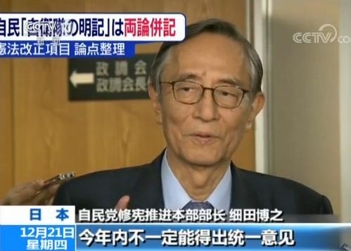 自民党修宪推进本部部长 细田博之:(关于修宪)目前党内还有很多观点,今年内不一定能得出统一意见。