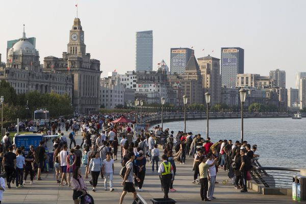 资料图片:2017年10月7日,游客在上海外滩参观游玩。新华社记者杜潇逸摄