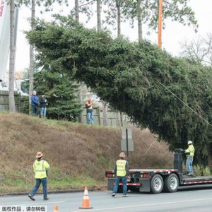 资料图:当地时间11月9日,美国宾夕法尼亚州州立学院,75英尺高的挪威云杉树被砍伐后送往纽约的洛克菲勒中心,它将作为今年洛克菲勒中心的装饰圣诞树。