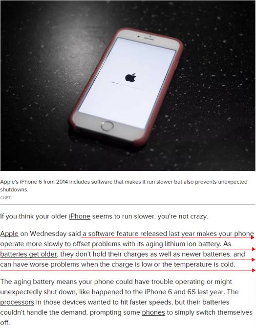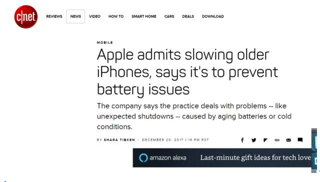 苹果手机变慢了,你也许想不到幕后的作祟者竟然是苹果公司自己。上周苹果公开承认人为降低手机速度是为应对电池老化问题。但消费者对此并不领情,他们怀疑苹果正在试图以欺诈手段诱使消费者购买新手机,并将苹果告上法庭,使苹果在这一诚信危机中愈陷愈深。