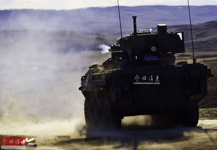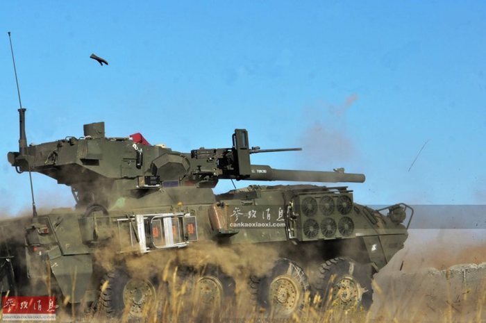 图为侧面拍摄的MGS开火瞬间,可见炮塔后方抛出的弹壳。