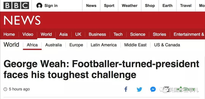 “乔治·维阿:球员出身总统面临生涯最严峻挑战。”
