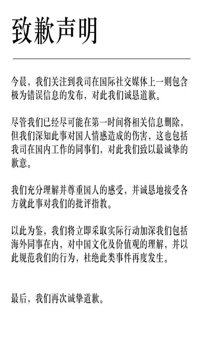5日,有网民发现奔驰在instagram官方账号上发布了一张宣传海报,宣传语直接引用达赖喇嘛的言论,大意为“从不同角度看待自己的境遇,你将拥有更开放的视野”。该广告引发中国网民不满,奔驰公司6日在微博账号上致歉,称第一时间将相关信息删除,并因此事对中国人情感上造成的伤害,向中国人民致以最诚挚的歉意。奔驰道歉后,仍有不少中国网民表示不认同。有人说,先表明自己的政治主张再道歉,反正政治影响已“到位”,钱还一样赚。