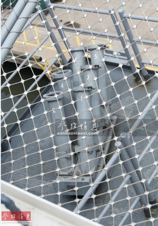 图为“巴丹”号上搭载的Mk36 SARBOC六联装干扰弹发射装置,全舰共搭载有6座发射器,用于干扰来袭的反舰导弹。