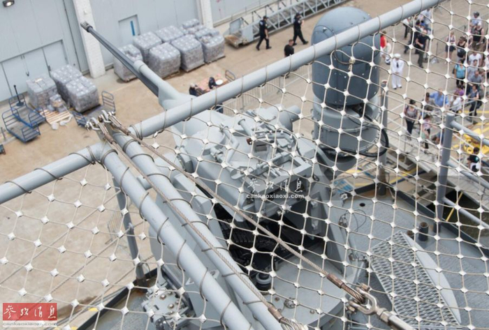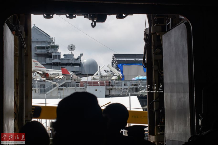 值得一提的是,“巴丹”号停靠的码头紧挨着著名的“勇猛”号航母博物馆,图为从舰上拍摄的“勇猛”号局部图。