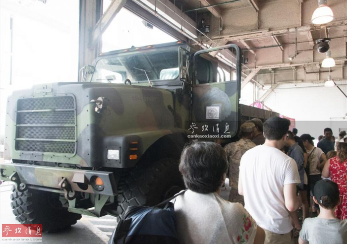 车辆甲板还有一辆奥什科什6X6重型军用卡车,也是陆战队的主力运输车之一。
