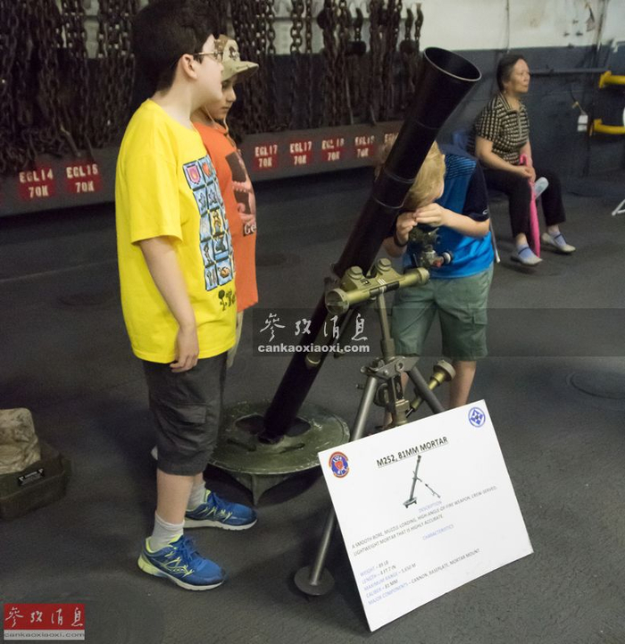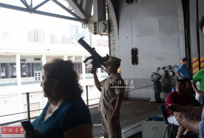 首先来到的是军械甲板,这里有展示多种陆战队的主战武器,图中可见著名的12.7毫米M2重机枪和MK19自动榴弹发射器,两者都是陆战队的主力反装甲和攻坚武器。