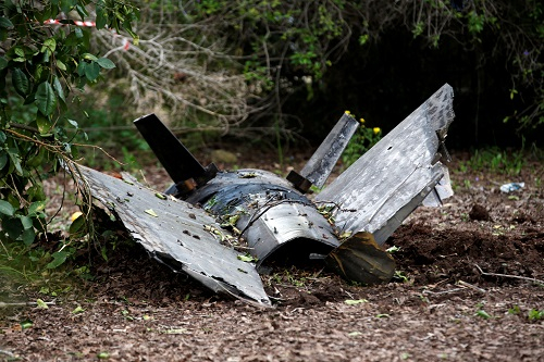 图为10日在以色列境内发现的叙利亚防空导弹残骸,距以战机坠毁地点3.2公里。(路透社)